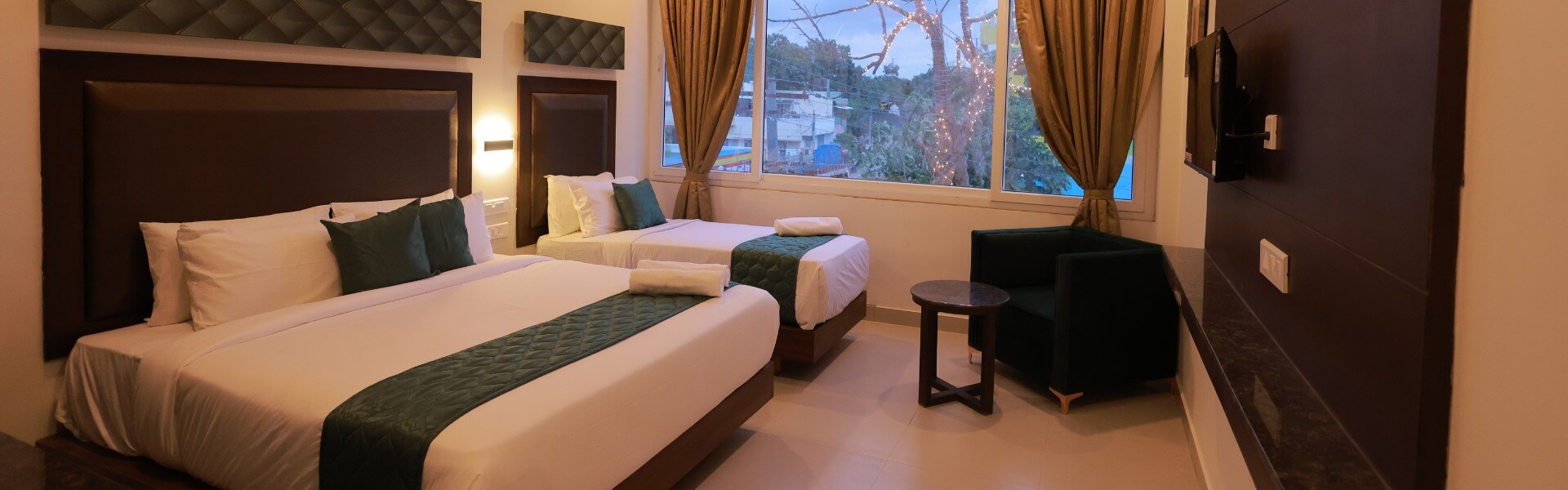 “ Unwind in pure luxury in our Superior Triple Bed Room designed especially for a larger group. The room is perfect for families travelling with elders, children, or friends. Three king-sized beds with cosy duvets and comfortable pillows welcome you after a tiring day of business or sightseeing. ”